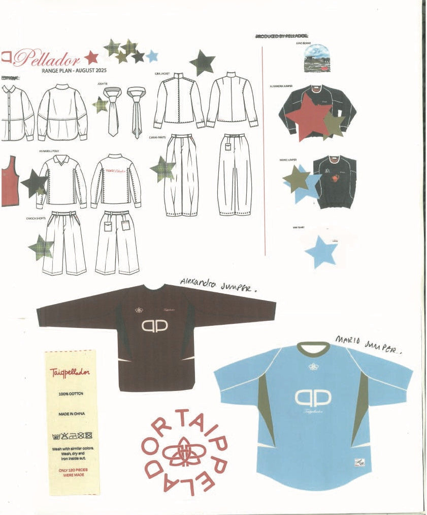 This collection celebrates friendship, creativity, and cultural storytelling, blending Pellador’s iconic football jumpers with Taippe’s signature tailored trousers and tanks. Though rooted in two distinct cultures, it reflects the ways in which craft, sport, and storytelling unite us across borders.